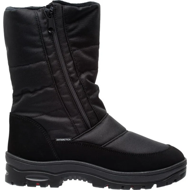 Antartica 3097 OC Nero snowboots zwart Heren Bent u op zoek naar snowboots voor uw wintersport vakantie of wanneer de sneeuw in Nederland valt? Dan zijn deze snowboots van Antartica een goede keuze. De snowboots zijn lekker warm aan de voeten en hebben een goede en comfortabele pasvorm. De snowboots zijn gemaakt van het materiaal Polyester. Hierdoor zijn ze lekker warm aan de voeten wanneer u ze draagt. De snowboot is voorzien van een OC Systeem, dit is een antislip systeem die bestaat uit twee beugels die zijn verwerkt in de zool. De beugels kunnen omgeklapt worden bij gladde omstandigheden, waarna er kleine Spikes verschijnen. Hierdoor heeft u extra grip bij gladde ondergronden. Pluspunten: + Waterdicht tot aan de ritssluiting + Ritssluiting voor een makkelijke in- en uitstap + Spike Systeem + Warm en comfortabel