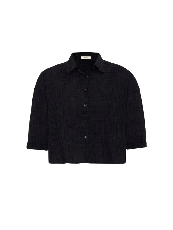 Blouse type: Klassieke blouse; Design: Overcut schouder; Type sluiting: Knoopsluiting; Materiaal: Katoen; Motief: Geruit; Kraag: Kentkraag; Extra's: All-over patroon; Pasvorm: Losse pasvorm; Armlengte: Driekwart mouw; Lengte: Normale lengte