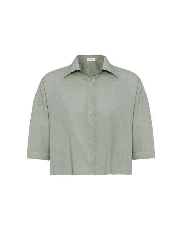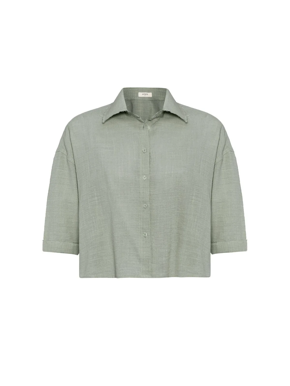 Blouse type: Klassieke blouse; Design: Gevoerde zoom/rand, Knop placket, Turn-down kraag; Materiaal: Katoen; Motief: Effen; Kraag: Kentkraag; Extra's: Op staal naden, Voelt zacht aan; Pasvorm: Wijde pasvorm; Armlengte: Driekwart mouw; Lengte: Korte pasvorm