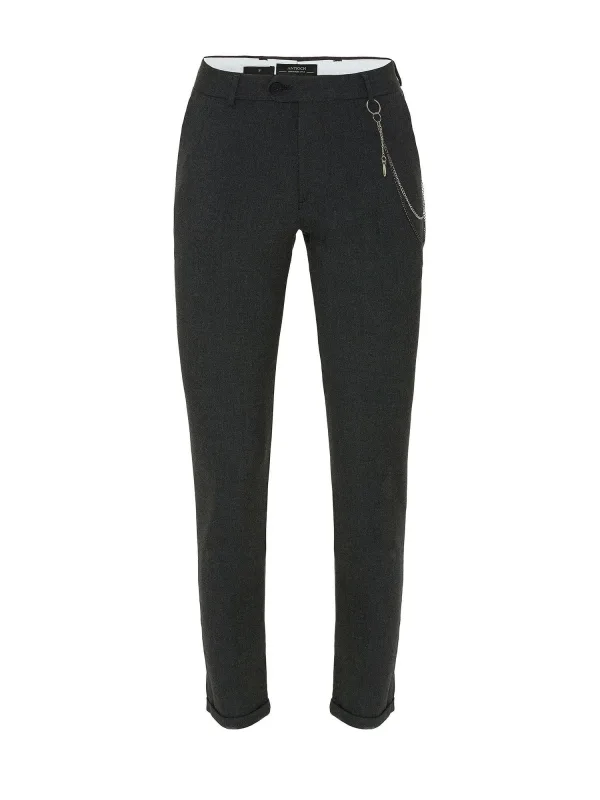 Design: Recht model, Tailleband, Omgeslagen zoom, Verborgen rits, Enkelhoog; Type sluiting: Knoopsluiting; Materiaal: Katoen; Motief: Mélange; Extra's: Buigzame grip, Voelt zacht aan, Riemlussen; Lengte: 7/8 lengte; Pasvorm: Regular