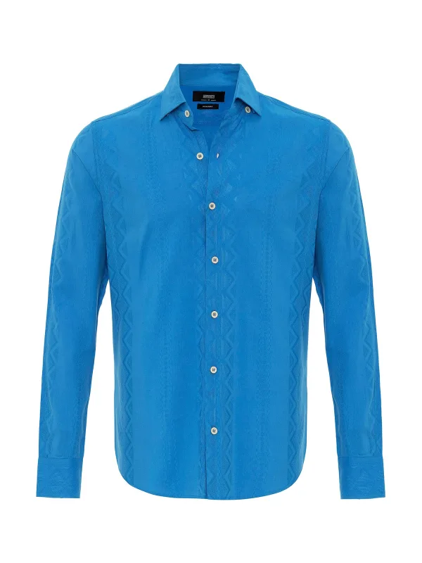 Design: 2-knoops manchetten, Recht model, Knop placket, Ronde zoom, Nektape; Type sluiting: Knoopsluiting; Materiaal: Katoen; Motief: Effen; Kraag: Kentkraag; Extra's: All-over patroon, Voelt zacht aan; Pasvorm: Regular fit; Armlengte: Lange mouw