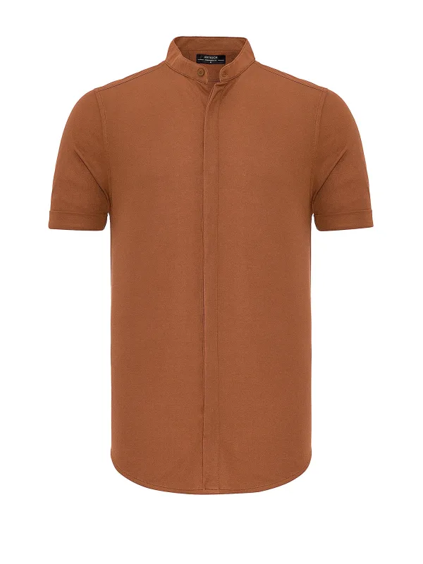 Design: Staande kraag, Verborgen knop placket; Type sluiting: Knoopsluiting; Materiaal: Katoen; Halstype: Opstaande kraag; Motief: Effen; Kraag: Opstaande kraag; Extra's: Vaste grip, Buigzame grip; Pasvorm: Normale pasvorm; Pasvorm: Slim fit; Armlengte: Kwartmouw; Lengte: Normale lengte
