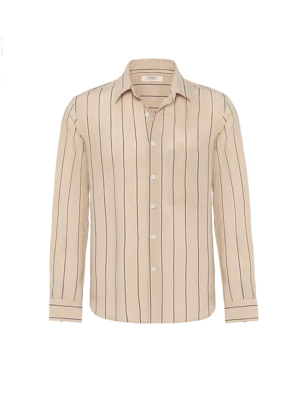 Design: Knop placket; Type sluiting: Knoopsluiting; Materiaal: Viscose; Motief: Gestreept; Kraag: Kentkraag; Extra's: All-over patroon; Pasvorm: Regular fit; Armlengte: Lange mouw
