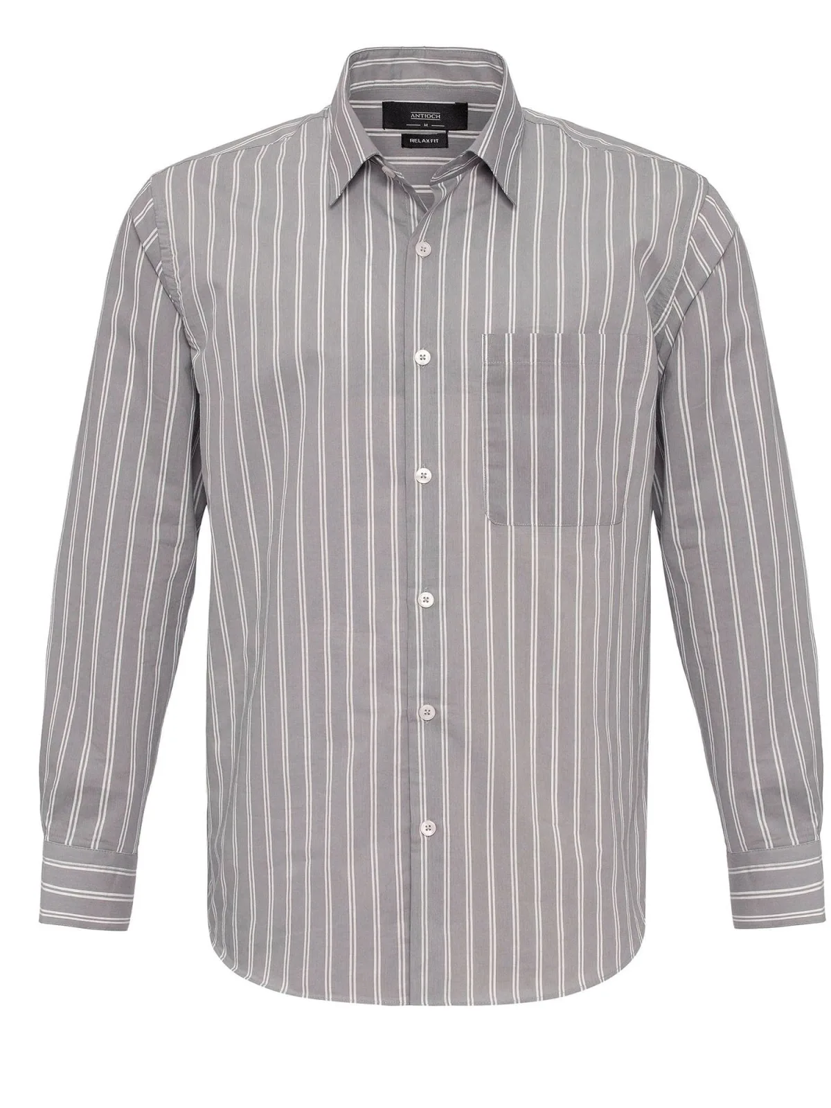 Design: Recht model, Knop placket, Geribd ceintuurtje, Ronde zoom, Turn-down kraag, Borstzak, Nektape; Type sluiting: Knoopsluiting; Materiaal: Katoen; Motief: Gestreept; Kraag: Kentkraag; Extra's: All-over patroon, Op staal naden, Buigzame grip, Voelt zacht aan; Pasvorm: Regular fit; Armlengte: Lange mouw
