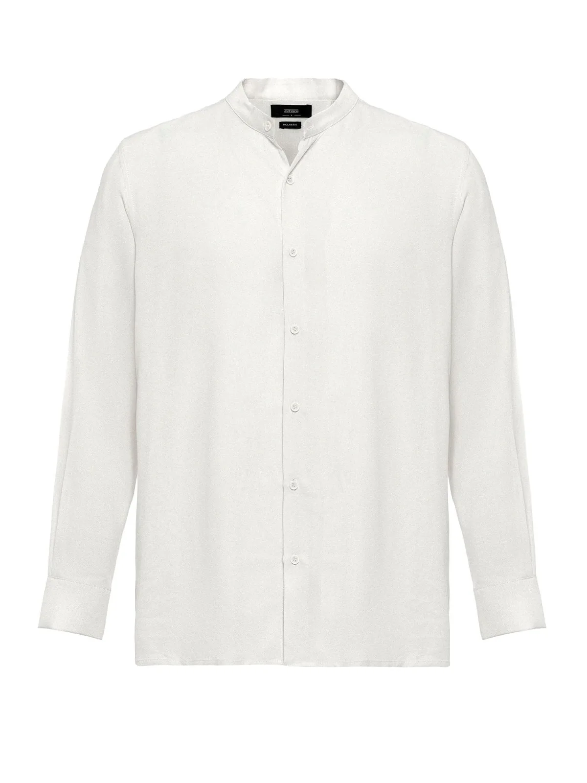 Design: 1-knoops manchetten, Gevoerde zoom/rand, Rechte zoom, Knop placket, Nektape; Type sluiting: Knoopsluiting; Materiaal: Viscose; Motief: Effen; Kraag: Opstaande kraag; Extra's: Op staal naden, Lichte stof; Pasvorm: Regular fit; Armlengte: Lange mouw
