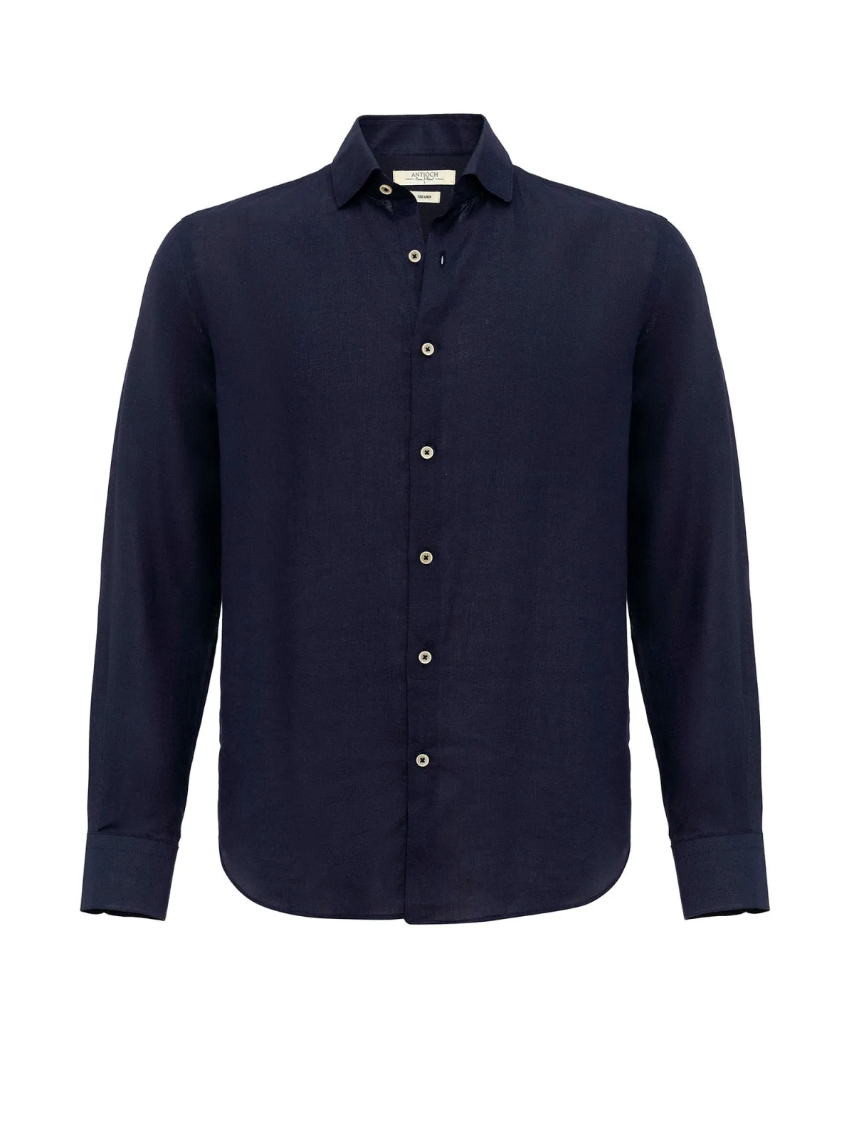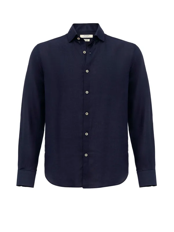 Design: 2-knoops manchetten, Recht model, Knop placket, Ronde zoom, Nektape; Type sluiting: Knoopsluiting; Materiaal: Linnen; Motief: Effen; Kraag: Kentkraag; Extra's: Buigzame grip, Lichte stof, Voelt zacht aan; Pasvorm: Regular fit; Armlengte: Lange mouw