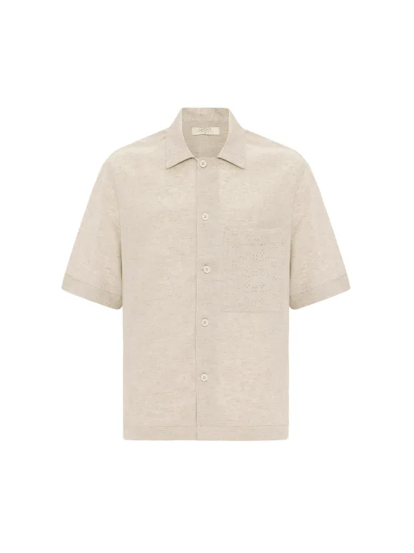 Design: Gevoerde zoom/rand, Rechte zoom, Knop placket, Borstzak; Type sluiting: Knoopsluiting; Materiaal: Linnen, Viscose; Motief: Mélange; Kraag: Cut-away boord; Extra's: Op staal naden, Voelt zacht aan; Pasvorm: Comfort fit; Armlengte: Halve mouw