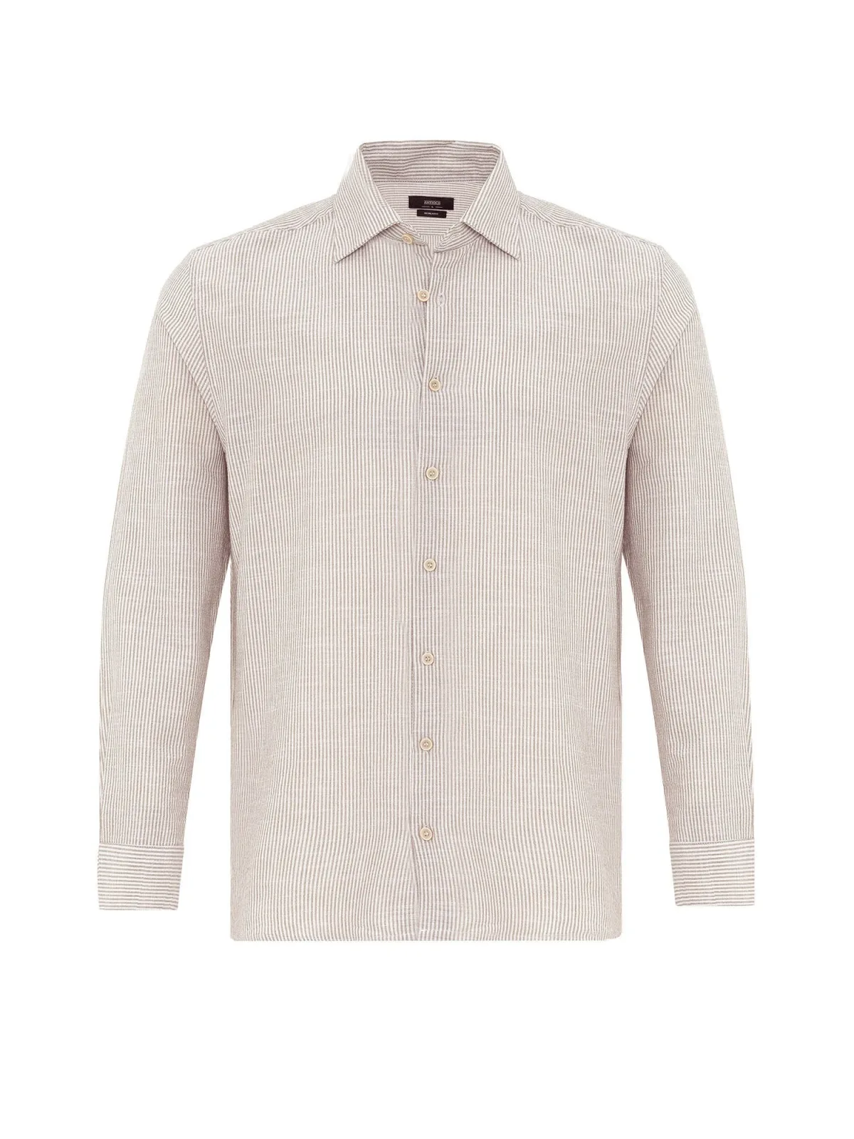 Design: Verborgen knop placket; Type sluiting: Knoopsluiting; Materiaal: Katoen; Motief: Gestreept; Kraag: Kentkraag; Extra's: Lichte stof; Pasvorm: Regular fit; Armlengte: Lange mouw