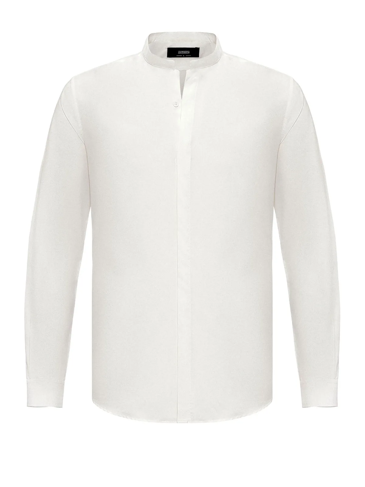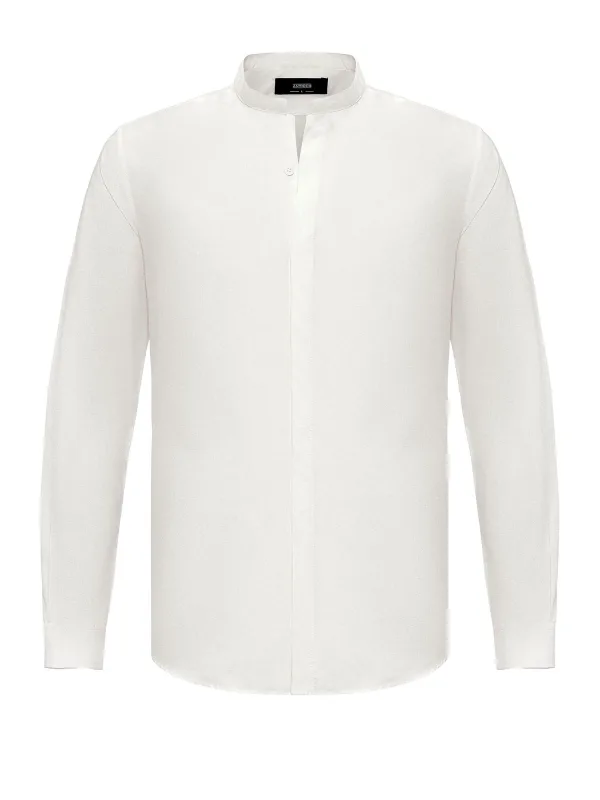 Design: Recht model, Staande kraag, Verborgen knop placket; Type sluiting: Knoopsluiting; Materiaal: Katoen; Motief: Effen; Kraag: Opstaande kraag; Extra's: Buigzame grip, Lichte stof; Pasvorm: Regular fit; Armlengte: Lange mouw