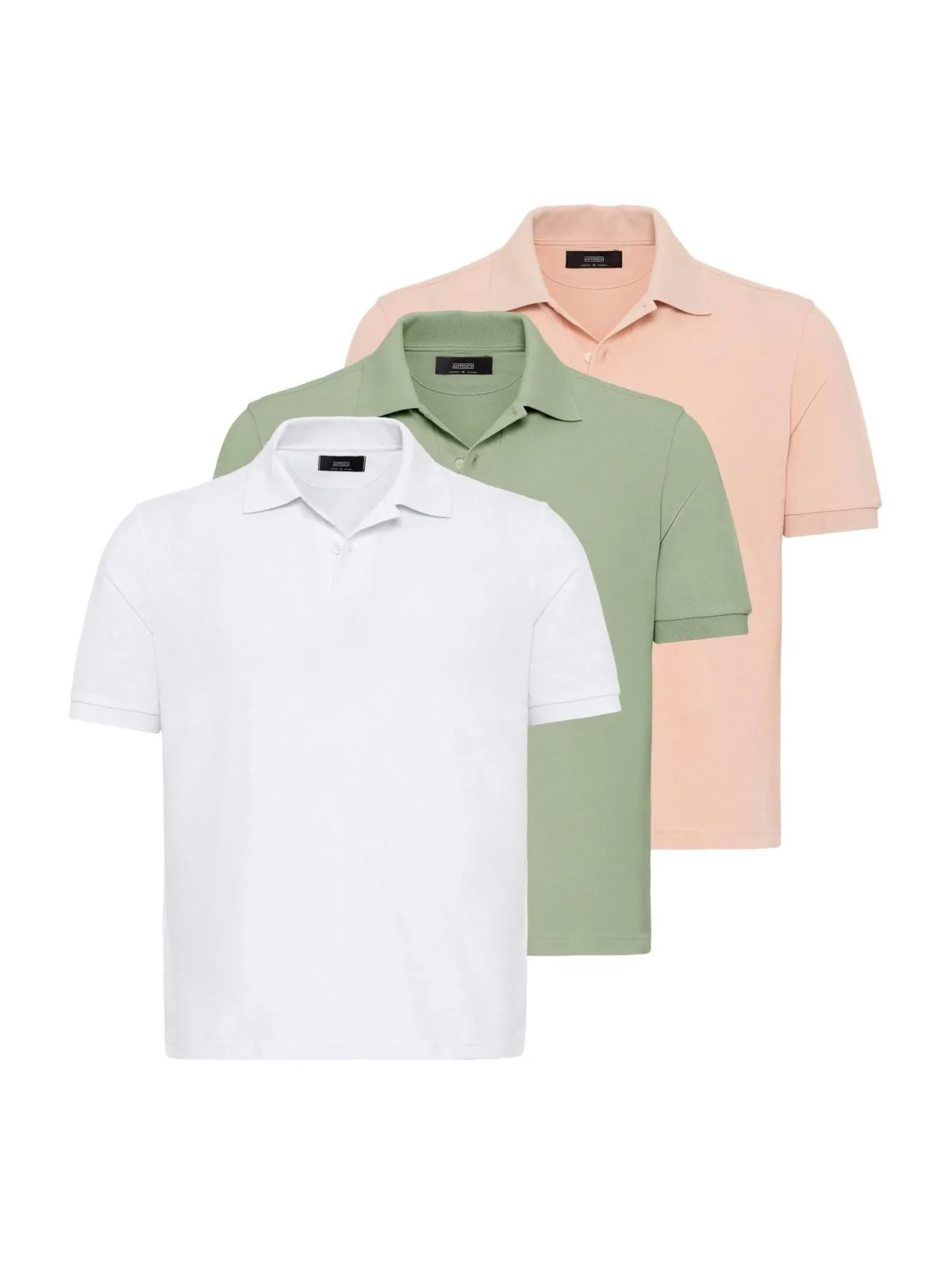Design: Knop placket; Type sluiting: Knoopsluiting; Materiaal: Jersey; Halstype: Polokraag; Motief: Effen; Extra's: Voelt zacht aan; Pasvorm: Normale pasvorm; Aantal: 3 Pack; Armlengte: Kwartmouw; Lengte: Normale lengte