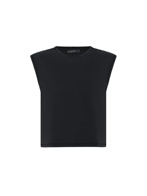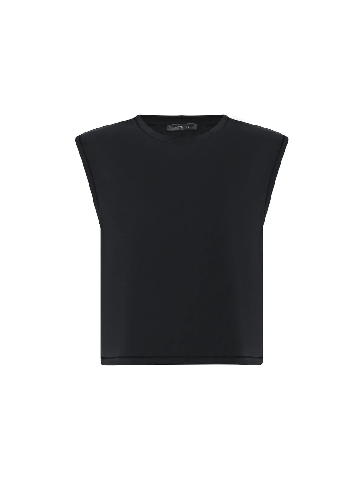 Design: Gevoerde zoom/rand, Rechte zoom; Materiaal: Jersey; Halstype: Ronde hals; Motief: Effen; Extra's: Op staal naden; Pasvorm: Normale pasvorm; Armlengte: Mouwloos; Lengte: Normale lengte
