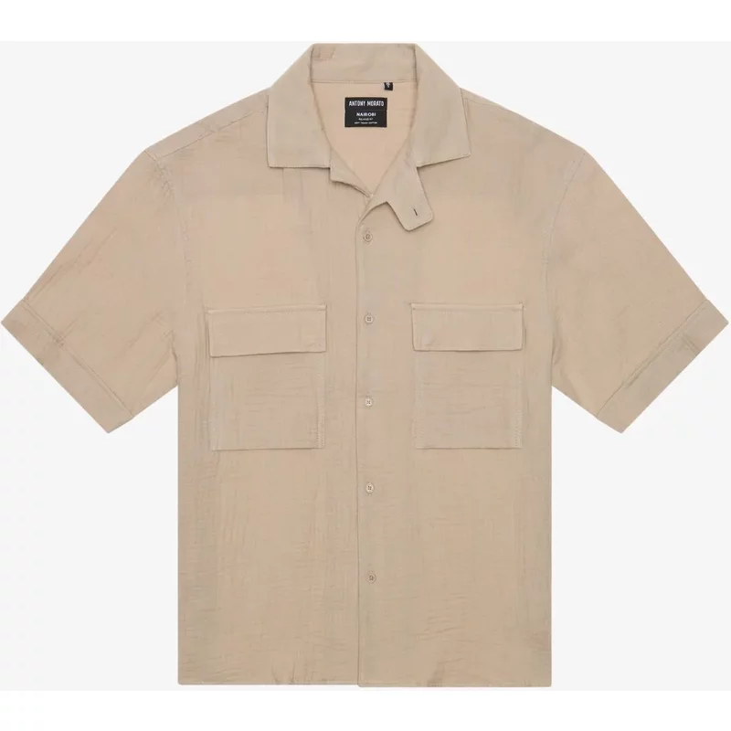De Antony Morato Nairobi Blouse in de kleur Beige heeft een relaxed pasvorm en crinckle kwaliteit. De blouse heeft een knoopsluiting en borstzakjes. Combineer met de bijpassende short.