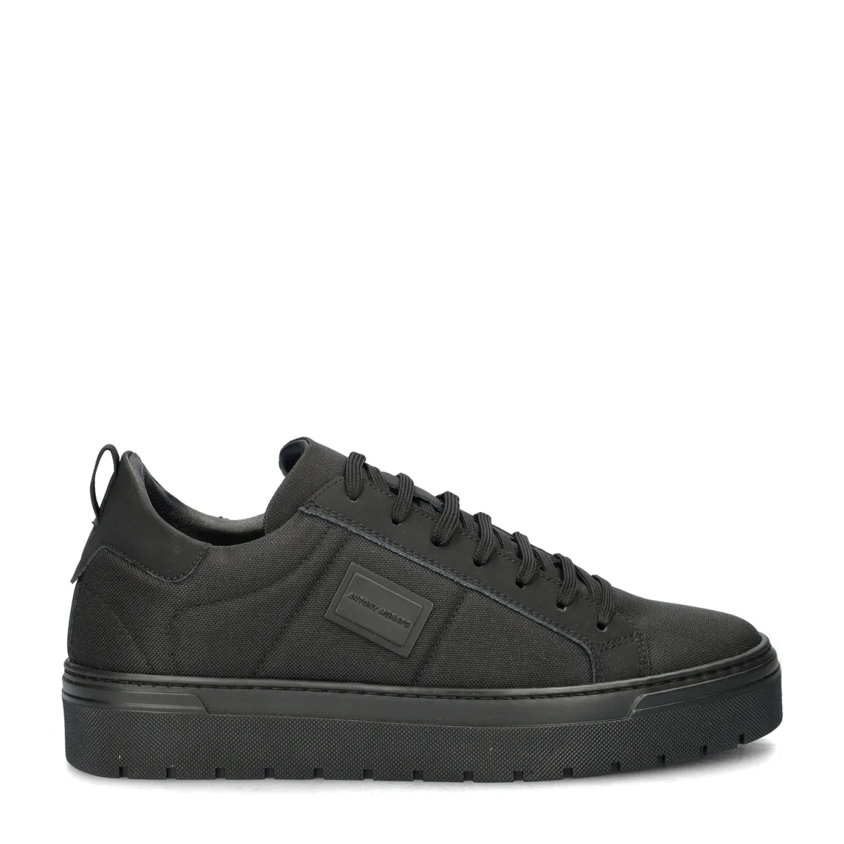 Antony Morato Metal Bold heren sneaker Deze sneaker is een veelzijdige en trendy schoen, ideaal voor zowel casual als nette gelegenheden, met een stijlvol design. Uitgevoerd in een combinatie van stevig nylon met verstevigend imitatieleer om de vetergaatjes. Met trendy metalen logo op de zijkant. Gevoerd met imitatieleer en badstof. Het badstof zorgt voor een aangenaam draaggevoel en goede vochtabsorptie. Dankzij de gewatteerde enkelkraag ervaar je optimaal comfort. Voorzien van een uitneembaar textielen voetbed met foamonderlaag wat voor een fijne demping zorgt tijdens het lopen. Afgewerkt met een stijlvolle elevated loopzool met voldoende grip.