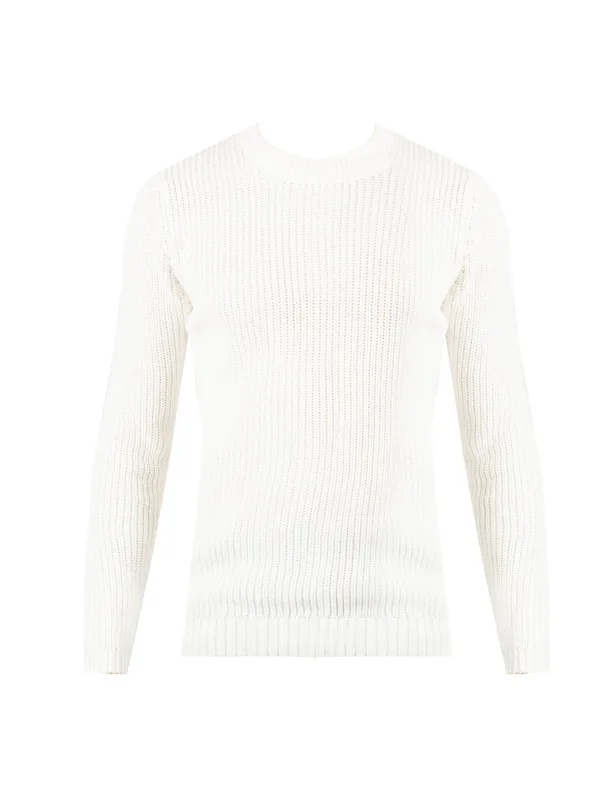 Eenvoudig gesneden Kabelpatroon Ronde halslijn Expressieve textuur Hals, mouwen en zoom afgewerkt met geribde boorden Merkopdruk in de nek Gemaakt van hoogwaardig katoen