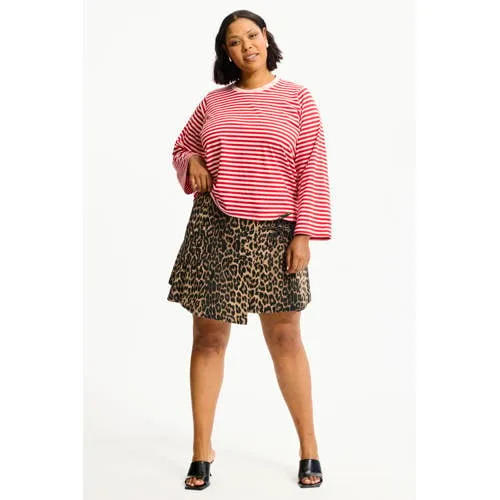 Dit dames T-shirt met rood-witte strepen van Anyday is een praktische basic voor elke dag. Het rood/witte streeppatroon geeft direct een heldere, verzorgde look en de ronde hals en korte, wijde mouwen zorgen voor een ontspannen stijl. Gemaakt van 94% katoen en 6% elastaan voelt het materiaal zacht aan en beweegt het soepel met je mee.Details die je elke dag waardeert Rood/wit streeppatroon voor een casual stijl Korte, wijde mouwen voor extra bewegingsvrijheid en luchtigheid Ronde hals die comfortabel aansluit zonder te strak te zitten Zachte katoenmix (94% katoen, 6% elastaan) voor een soepele touch Onderdeel van de grote maten collectie, met aandacht voor een comfortabele pasvorm Shirt zonder borstzak of opvallende details voor een rustige, clean look Geschikt voor het lente seizoen en goed te dragen in laagjesMakkelijk te combineren in jouw dagelijkse lookDit T-shirt sluit eenvoudig aan bij je dagelijkse garderobe. Combineer het met een jeans of chino voor een ontspannen outfit, of draag het met een rok voor een meer geklede stijl. Door de zachte stof en het rechte model blijft het aangenaam aanvoelen, ook op langere dagen.Anyday: kleding voor alledaags gemakAnyday richt zich op praktische kleding die je vaak kunt dragen. De ontwerpen zijn afgestemd op dagelijks gebruik, met materialen die prettig aanvoelen en pasvormen waar je op kunt rekenen. Zo voeg je met dit T-shirt een vaste basic toe aan je garderobe.Een praktische keuze voor dagen waarop je een soepel vallend shirt met een rood/witte streep zoekt.