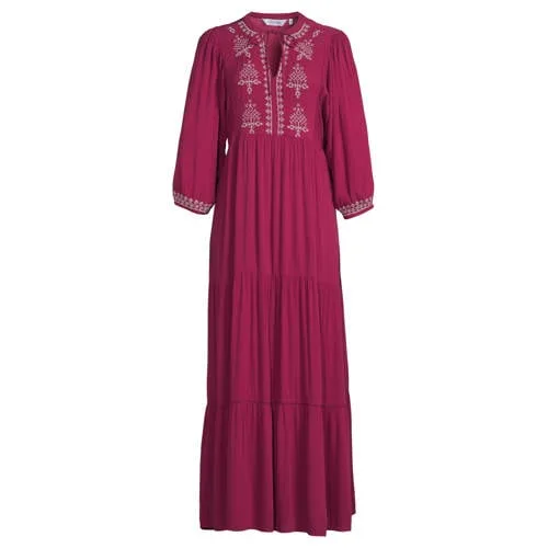 Anytime crinkle maxi jurk met borduursel wijnrood