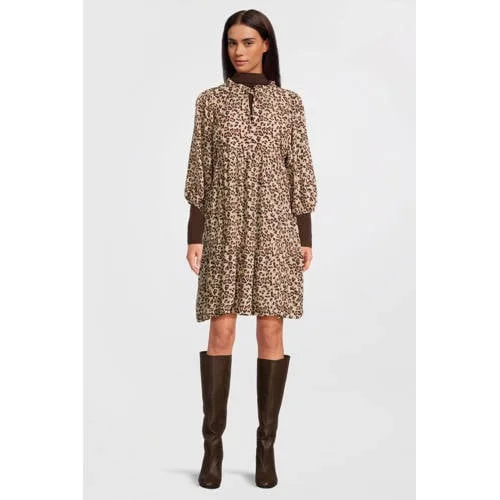 Anytime crinkle midi jurk met V-hals panterprint Prijzen