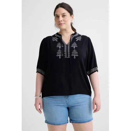 Anytime crinkle top met borduursel zwart Prijzen