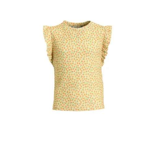 Anytime crinkle top met ruffles bloemenprint geel Prijzen