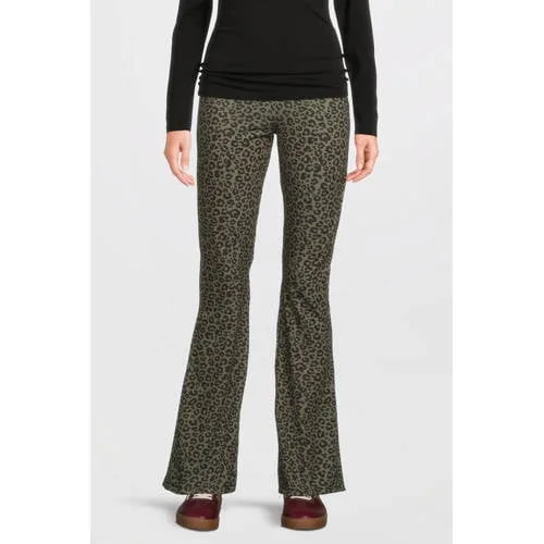 Anytime flared broek met panterprint khaki