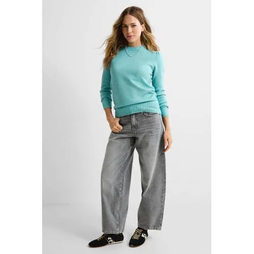 Anytime gebreide trui met pofmouwen lichtblauw Prijzen