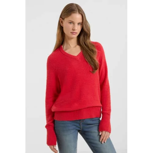 Anytime gebreide trui met V-hals rood Prijzen