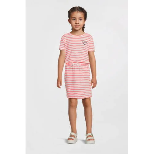 Anytime gestreepte jurk wit/koraal