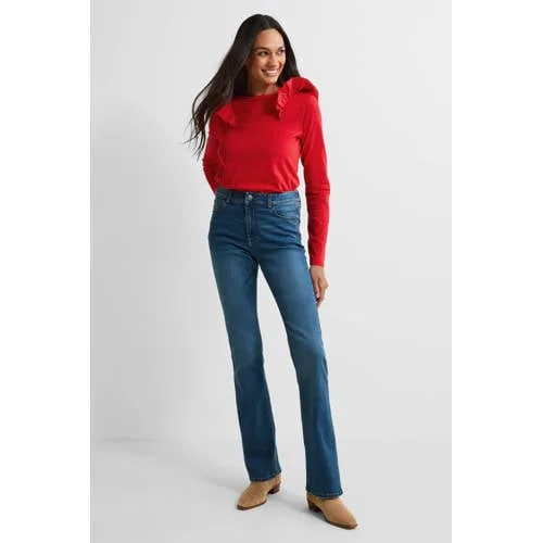 Deze flared fit jeans voor dames van Anytime is gemaakt van een stretchdenim. Dit 5-pocket model heeft een hoge taille, rits-en knoopsluiting.Details van deze jeans:• flared fit• 5-pocket• high waist• stretch denim