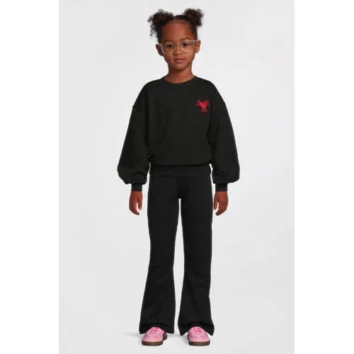 Deze flared broek voor meisjes van Anytime is gemaakt van een katoenmix. Het model heeft een normale taille en elastische tailleband. In de stof is een jacquard panterprint verwerkt. Maak de look compleet door het te combineren met de bijpassende sweater.Details van deze sweater:• co-ord• normale taille• flared pasvorm• elastische inzet• ingebreid patroon• jacquard panterprint