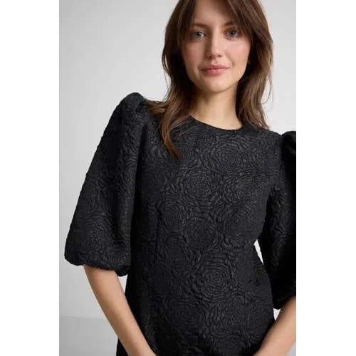 Deze jurk voor dames van Anytime is gemaakt van een polyesterstof. Het model heeft een ronde hals, ritssluiting en korte pofmouwen. De jurk valt tot net boven de knie. In de stof is een jacquard bloemen print verwerkt, wat het een elegante en speelse uitstraling/touch geeft. Ideaal voor speciale gelegenheden.Details van deze jurk:• ronde hals• ritssluiting• knielengte• pofmouwen• elastische boord bij de mouweinde