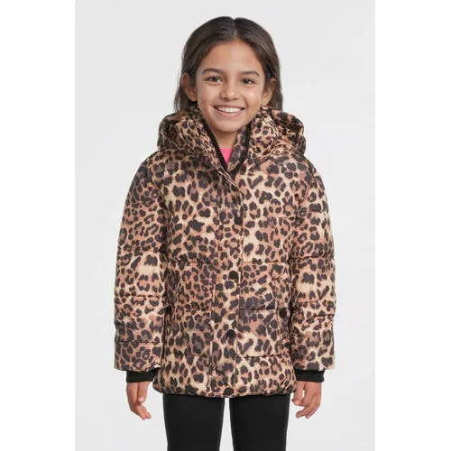 Deze korte gewatteerde jas voor meisjes van Anytime is een echte blikvanger dankzij de all over panterprint. De jas heeft een vaste capuchon, opgestikte zakken met drukknoop en een ritssluiting met overslag. De zachte vulling en doorgestikte naden zorgen voor warmte en comfort tijdens frisse dagen.Details over deze jas:• korte lengte• vaste capuchon• all over panterprint• gewatteerd• steekzakken met drukknopen