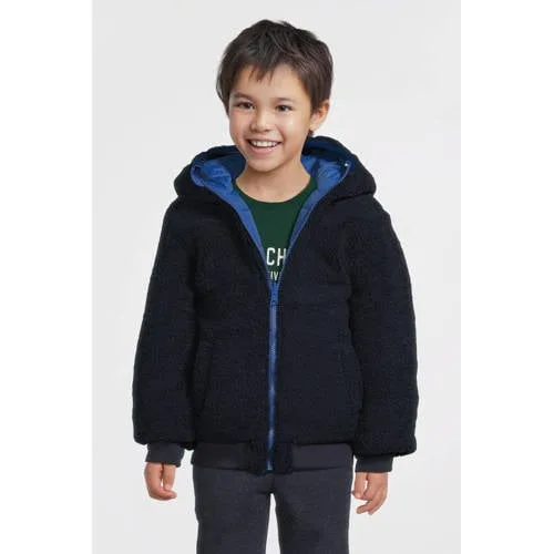 Deze reversible jas voor jongens van Anytime combineert stijl en veelzijdigheid. Het model heeft een capuchon, lange mouwen en ritssluiting. De jas is omkeerbaar, waardoor je het op 2 manieren kan dragen. De ene kant is gemaakt van super zachte teddy voering, de andere kant, is uitgevoerd in een gladde, gewattteerde stof. De korte lengt maakt de jas extra comfortabel voor de frisse dagen.Details van deze jas:capuchonreversibleritssluitingsteekzakkenteddy voeringlange mouwengestreepte ribboord