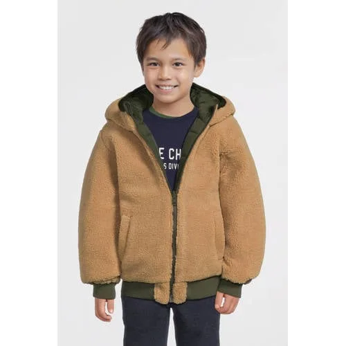 Deze reversible jas voor jongens van Anytime combineert stijl en veelzijdigheid. Het model heeft een capuchon, lange mouwen en ritssluiting. De jas is omkeerbaar, waardoor je het op 2 manieren kan dragen. De ene kant is gemaakt van super zachte teddy voering, de andere kant, is uitgevoerd in een gladde, gewattteerde stof. De korte lengt maakt de jas extra comfortabel voor de frisse dagen.Details van deze jas:capuchonreversibleritssluitingsteekzakkenteddy voeringlange mouwengestreepte ribboord