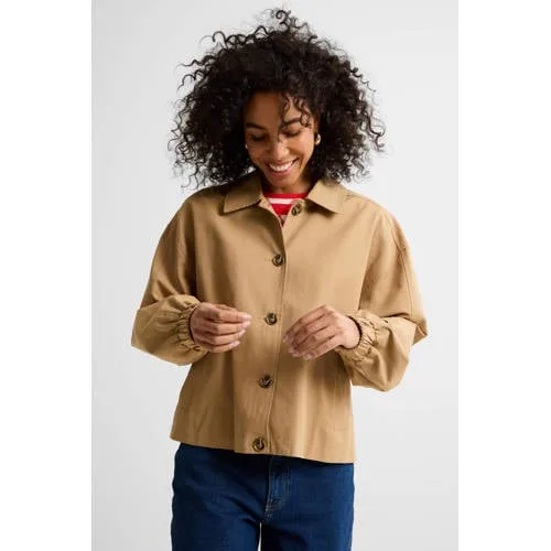 Deze jasje voor dames van Anytime is gemaakt van katoenmix. Het model heeft een klassieke kraag, lange mouwen en knoopsluiting. Aan de voorkant heb je 2 steekzakken en bij de mouwen elastische boord. Verder heeft de jasje een geplooid detail aan de achterkant. Dankzij de korte lengte draag je het moeiteloos met elke outfit. Perfect voor een tijdloze, verzorgende look tijdens de voorjaar!Details van deze jasje:• korte lengte• knoopsluiting• klassieke kraag• 2 zakkken voor• geplooid detail aan de achterkant• lange mouwen met elastische boord