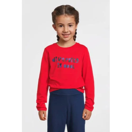 Deze longsleeve voor meisjes van Anytime is gemaakt van een zachte katoen kwaliteit. Het model heeft een ronde hals en lange mouwen. Aan de voorkant heb je een opvallende grapic printopdruk. Een fijne basic met een speelse twist.Details van deze longsleeve:ronde halslange mouwenzachte katoenk waliteit'Diversity Is cool' graphic print
