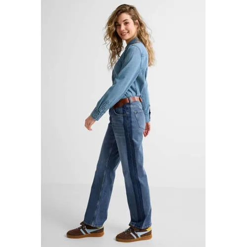 Deze low rise fit jeans voor dames van Anytime is gemaakt van een katoenmix. Dit 5 pocket model heeft een rits- en knoopsluiting. Aan de zijkant heb je contrasterende paneel.Details van deze jeans:• denim• low rise fit• regular waist• lichte stretch• 5 pocket model• rits- en knoopsluiting• contrasterende zijpaneel