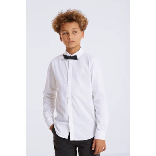 Dit overhemd voor jongens van Anytime is een feestelijke klassieker met een stijlvolle touch. Het shirt heeft een vaste strik die zorgt voor een nette en verzorgde uitstraling. Gemaakt van een soepele katoenmix met een klassieke kraag, knoopsluiting en lange mouwen. Ideaal voor bruiloften, feestjes of andere nette gelegenheden.Details van dit overhemd:• klassieke kraag• knoopsluiting