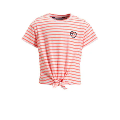 Anytime T-shirt met knoopdetail wit/koraal Prijzen