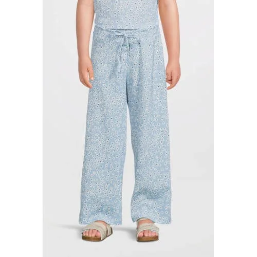 Anytime wide leg crinkle broek bloemenprint lichtblauw