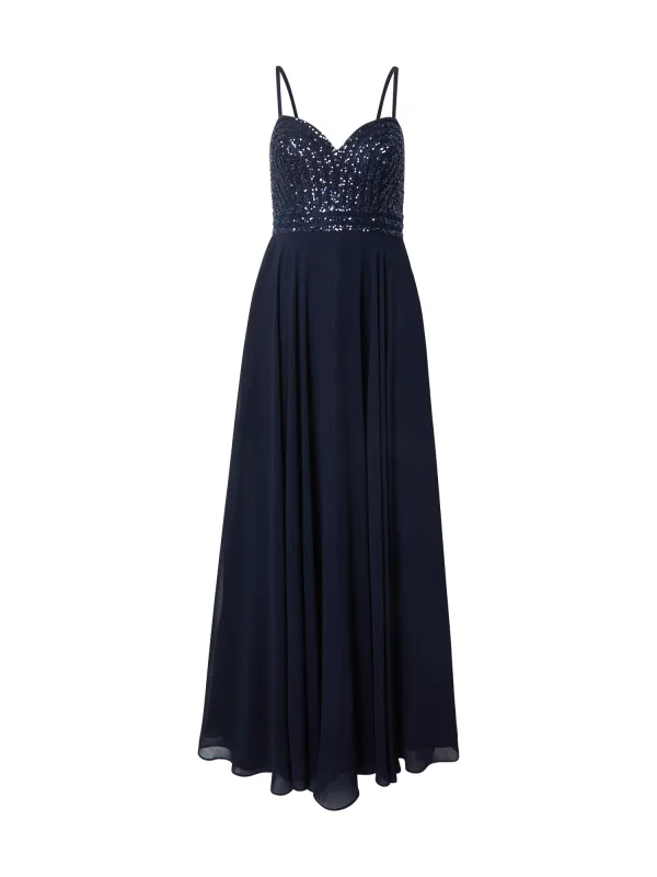 Design: Rug rits, Diepe snit/decolleté; Type sluiting: Ritssluiting; Materiaal: Chiffon; Motief: Effen; Soort bandjes: Normale bandjes; Details: Pailletten, Gedrapeerd; Extra's: Op staal naden, Lichte stof; Lengte: Lang/maxi; Snit: Getailleerd; Pasvorm: Aansluitende pasvorm; Armlengte: Mouwloos