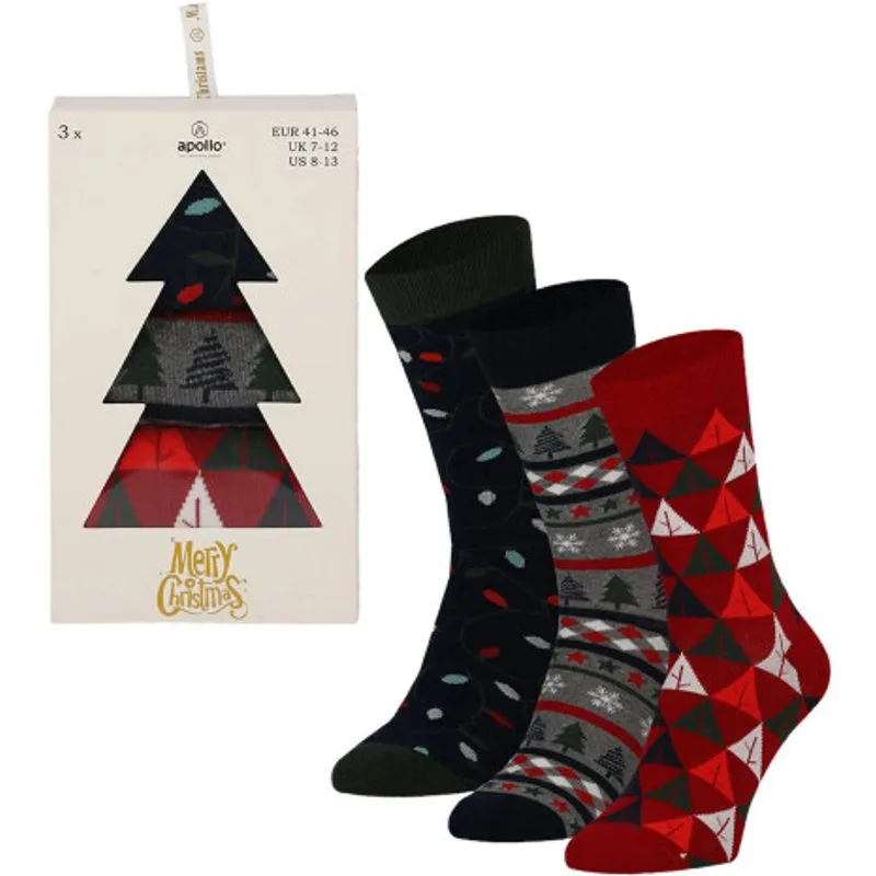 Apollo Heren kerstsokken giftbox 3-pack print Prijzen