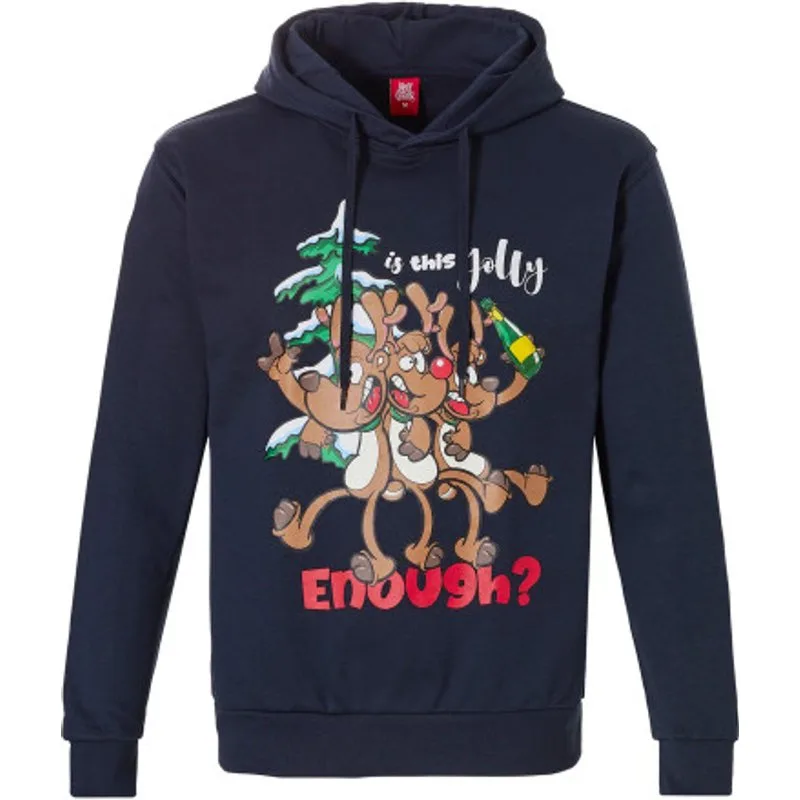 Deze speelse heren kerst hoodie is een vrolijke twist op de traditionele kersttrui! Met een opvallende foute kerstprint en een comfortabele capuchon ben je helemaal klaar voor de kerstborrel of een gezellige winteravond op de bank. Ideaal om het koude seizoen met een knipoog te trotseren.