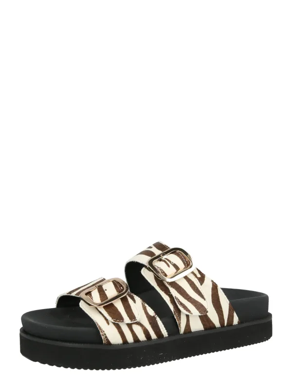 Design: Profielzolen; Type sluiting: Slip; Materiaal: Leer; Motief: Dierenprint; Materiaal: Suède; Schoenneus: Open toe; Extra's: Buigzame grip, Flexibele zool; Hakhoogte: Platte hak (0-3 cm)