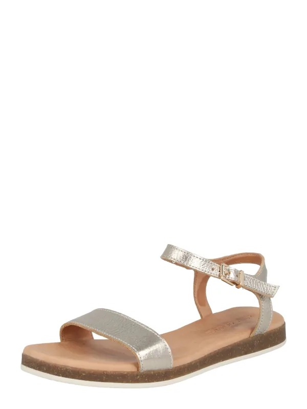 Design: Open randen, Verstelbare riemen, Gesp; Type sluiting: Riemsluiting; Materiaal: Leer; Motief: Effen; Materiaal: Glad leer; Schoenneus: Open toe; Extra's: Gladde stof, Flexibele zool, Metallic look; Hakhoogte: Platte hak (0-3 cm)