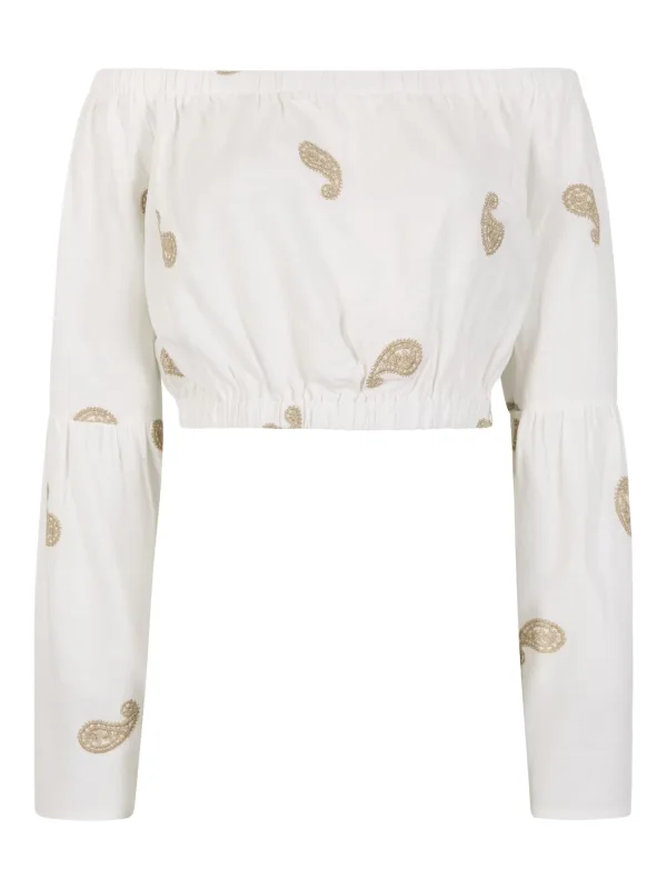 Blouse type: Klassieke blouse; Design: Kimonomouwen; Materiaal: Viscose; Motief: Paisley; Details: Borduursels; Pasvorm: Normale pasvorm; Armlengte: Lange mouw; Lengte: Korte pasvorm