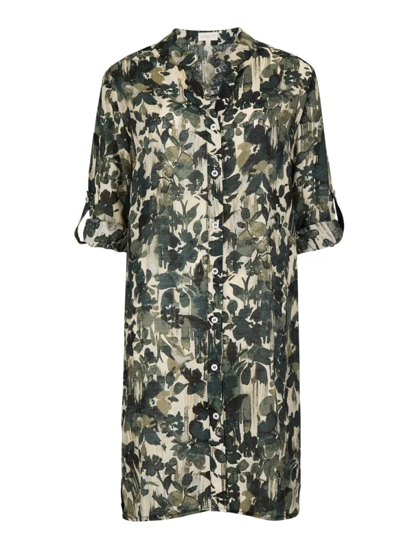 Blouse type: Blouseshirt; Design: Knop placket, Zijdelingse inkepingen, Trompetmouwen; Type sluiting: Knoopsluiting; Materiaal: Viscose; Motief: Bloemenprint; Kraag: Button-down; Extra's: All-over patroon; Pasvorm: Losse pasvorm; Armlengte: Lange mouw; Lengte: Normale lengte