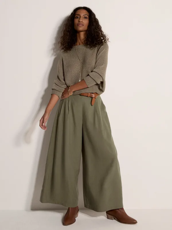 Design: Elastische taille/zoom, Opgezette zakken; Type sluiting: Elastische band; Materiaal: Lyocell; Motief: Effen; Details: Ruches; Lengte: 7/8 lengte; Pasvorm: Wide leg; Taillehoogte: High waist
