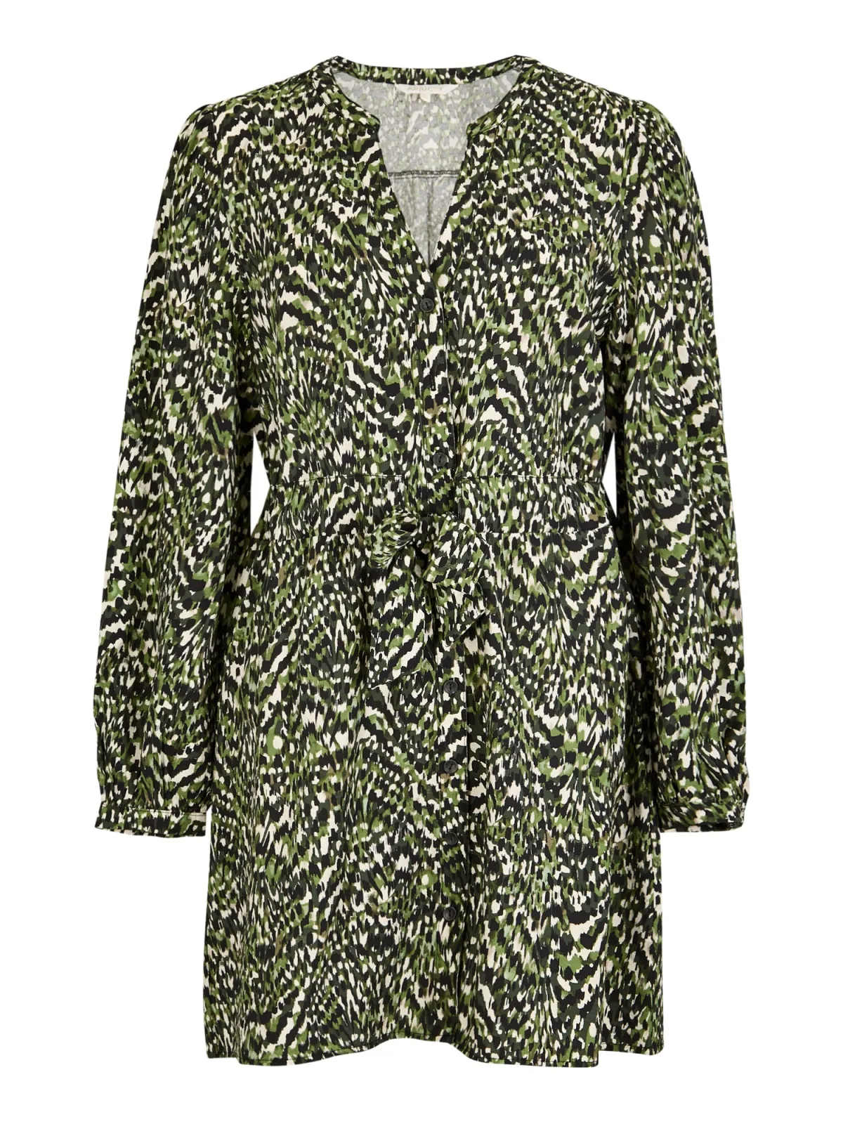 Design: Mouw revers, Met riem; Type sluiting: Knoopsluiting; Halstype: V-hals; Soort bandjes: Normale bandjes; Extra's: All-over patroon; Lengte: Knielengte; Pasvorm: Normale pasvorm; Armlengte: Lange mouw