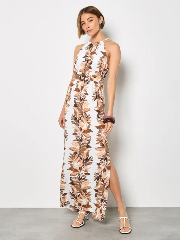 Design: Met riem; Materiaal: Viscose; Motief: Bloemenprint; Soort bandjes: Haltermodel; Lengte: Lang/maxi; Pasvorm: Losse pasvorm; Armlengte: Mouwloos