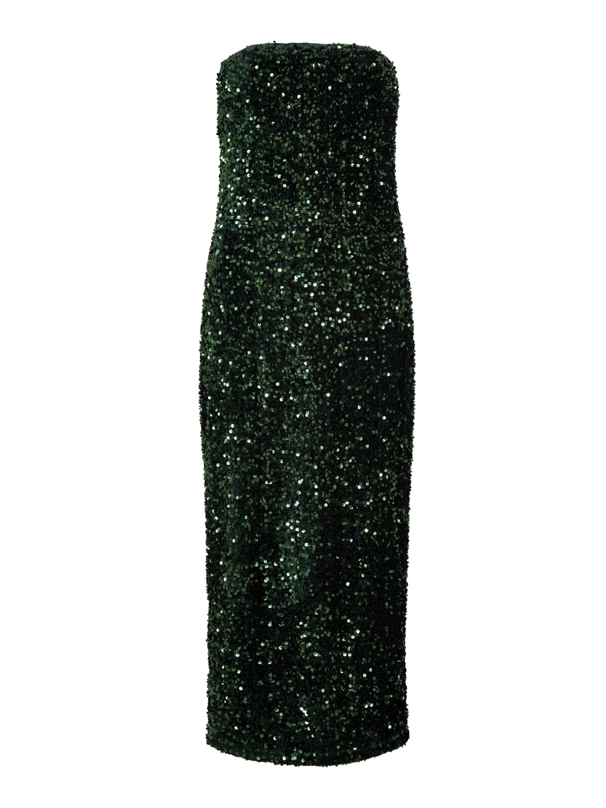 Design: Split; Type sluiting: Elastische band; Motief: Effen; Soort bandjes: Bandeau; Details: Pailletten; Extra's: Glanzend; Lengte: 3/4 lengte; Pasvorm: Aansluitende pasvorm; Armlengte: Mouwloos